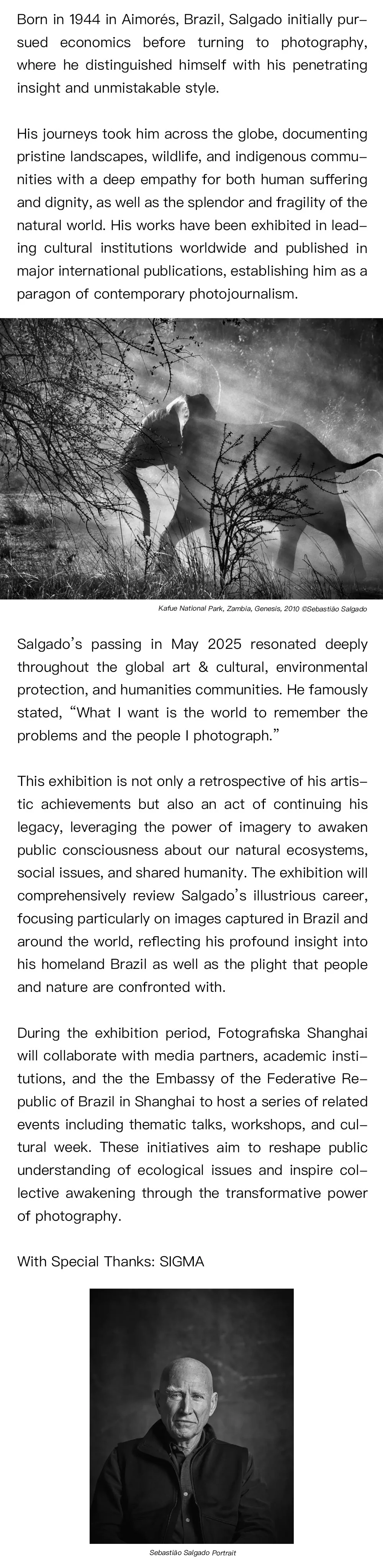 Fotografiska Shanghai is hosting the first major retrospective of legendary Brazilian photographer Sebastião Salgado, showcasing his iconic work from over 40 years—think stunning landscapes, raw humanity, and powerful storytelling. Running from July 18 to November 9, it’s a must-see tribute to the late artist, with talks, workshops, and a Brazilian cultural week to dive deeper into his world.