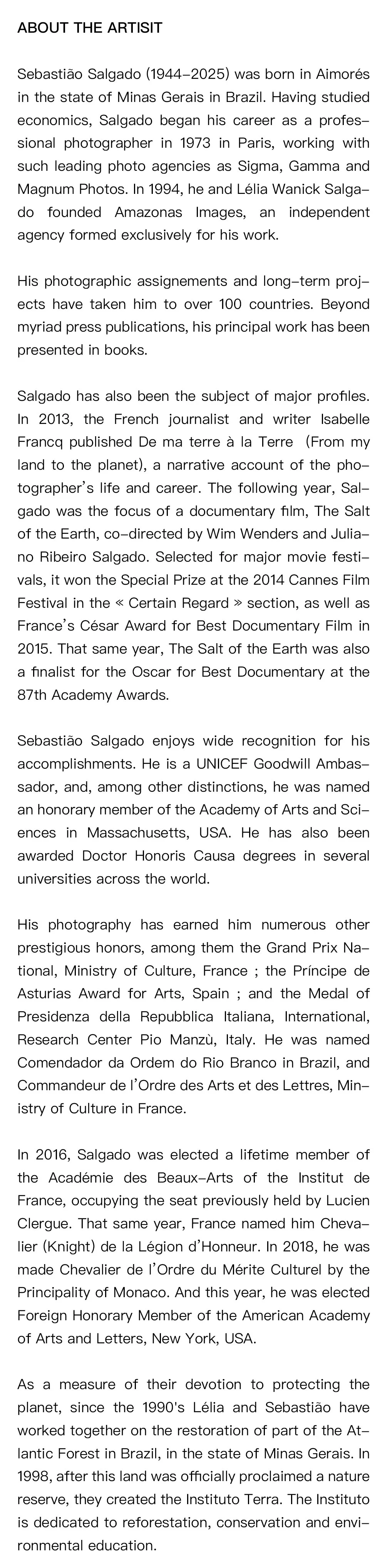 Sebastião Salgado Retrospective Exhibition