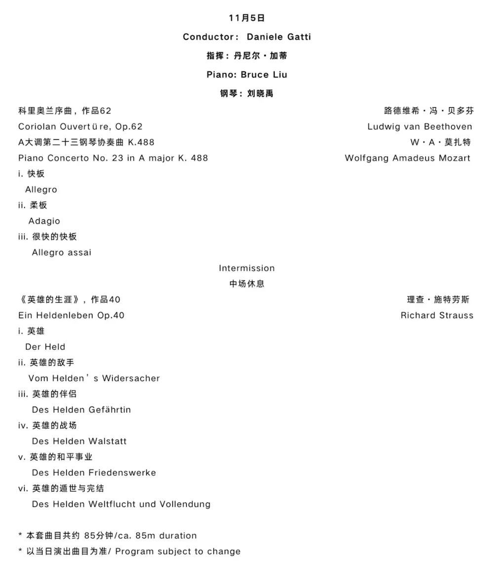 Then on November 5, after opening with Beethoven’s Coriolan Overture, the orchestra will join forces with Bruce Liu, the sensational winner of the 18th Chopin International Piano Competition, to perform Mozart’s lyrical Piano Concerto No. 23 in A Major. The evening concludes with Richard Strauss’s epic Ein Heldenleben (A Hero’s Life)—a deeply personal nod to the orchestra’s century-old connection with the composer.