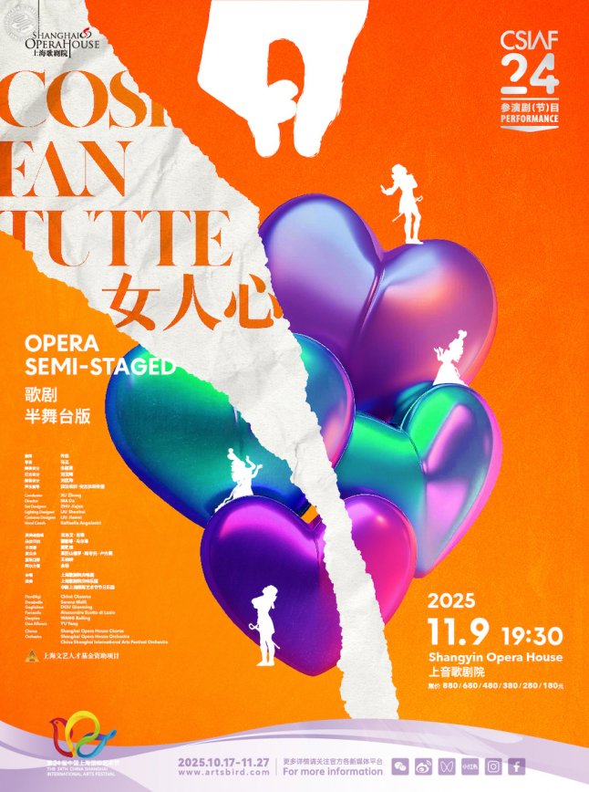 This production continues the Shanghai Opera House’s long-term exploration of Mozart’s comic operas and reflects its commitment to international collaboration, production innovation, and localized artistic expression. As one of the key projects of the Opera House and the Festival, the semi-staged Così fan tutte is both a contemporary interpretation of classical opera and an invitation for today’s audiences to reflect on love and human nature.