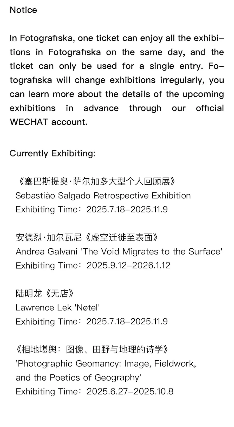 • Price: 120rmb/person (for all the exhibits at Fotografiska)