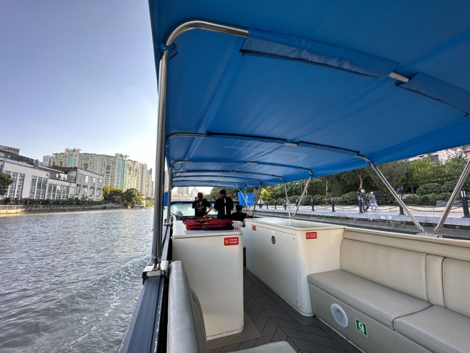 Right now, there are two types of boats for the Suzhou Creek cruise:
