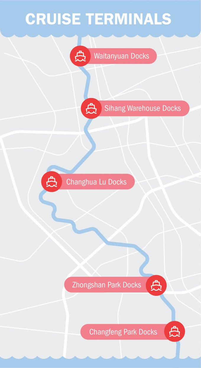Currently the Suzhou Creek cruise operates from five wharves: Waitanyuan is just a few meters off The Bund, Sihang Warehouse next to the