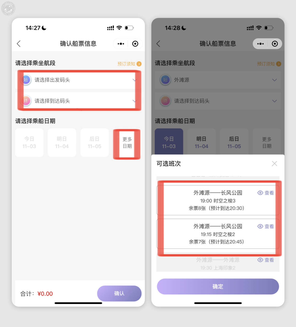 When booking tickets, you can choose your starting point and destination. Prices vary from 60rmb to 160rmb per adult, with children receiving a 50% discount. The duration of the journey depends on the chosen route, ranging from a leisurely 30 minutes to a more extensive 90 minutes.