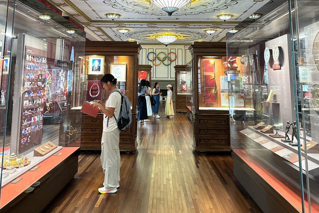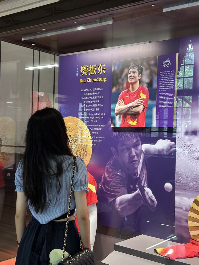 Then there's the Olympic Gallery, which was packed with people hovering around a shrine to table tennis god Fan Zhendong, who won gold in Paris 2024. His kit and training clothes are on display — and plenty of people were stopping for photos. There's also a look at China's wider Olympic journey and the stars who shaped it.