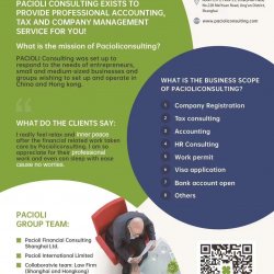 Pacoli Consulting Group has been providing professional accounting and tax management, company set-up service to SME in Shanghai, Hong Kong, Shenzhen and Singapore for over 10 years. Their team members are all holding professional certificates with rich experience in the China and International accounting standards and tax rules.