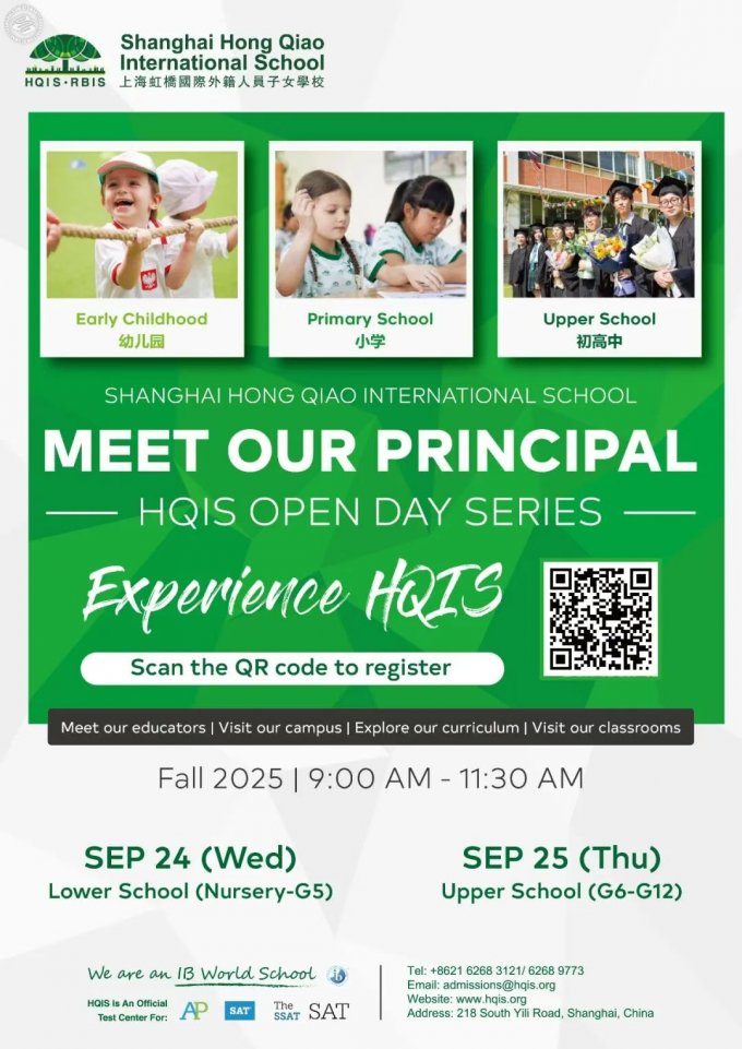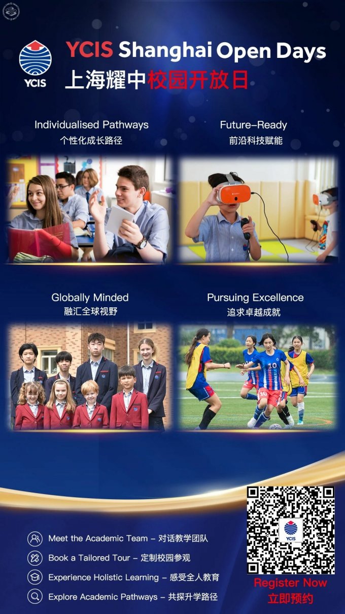 YCIS (Yew Chung International School), the first international school invited by the Shanghai government in the 1990s, has since become a leading institution with six campuses across the city. Serving students aged 2 to 18, YCIS offers a unique bilingual program in English and Chinese, fostering global citizenship in a diverse, multicultural environment. Families are invited to attend Open Days for an inside look at the curriculum, teaching style, and vibrant school community through presentations, guided tours, and classroom visits. Space is limited, so early registration via the QR code below is recommended.