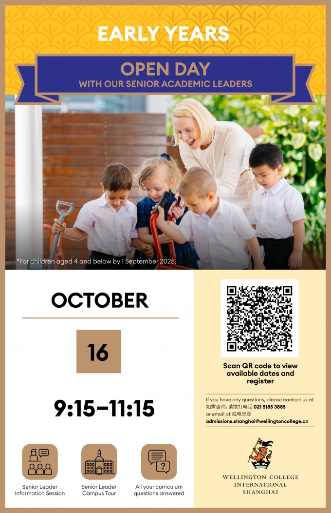 Experience a top-ranked education for yourself at the next Shanghai French School open house. This non-profit international institution welcomes over 1,530 students (not just French nationals!) across its Qingpu and Yangpu campuses, offering robust multilingual streams in French, English, and Chinese. It’s your chance to tour the facilities, meet the leadership team, get the lowdown on the curriculum, and chat with current parents. Open days are happening throughout October, November, and December—scan the QR code below, call, or email admissions to book your spot.