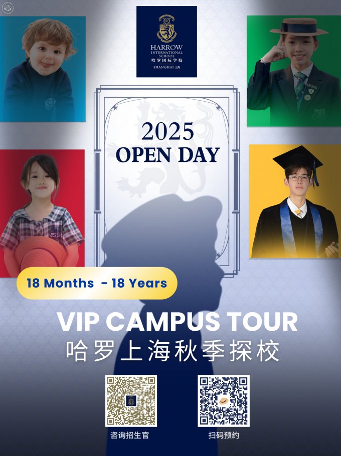 Discover Harrow International School Shanghai (ages 18 months to 18 years) through their VIP Campus Tour : explore their English National Curriculum, culminating in IGCSE, A-Level and AP qualifications, experience our modern classrooms, science labs, art studios, and vibrant student life, and learn how their foster leadership, service and global citizenship. Secure your place via the QR code or contact our Admissions Team!